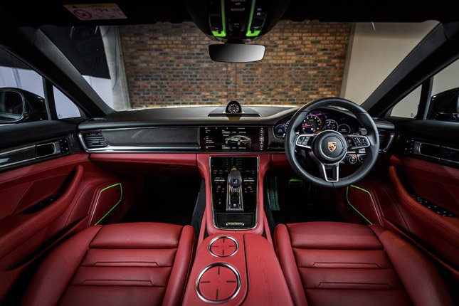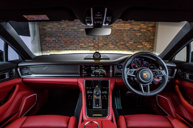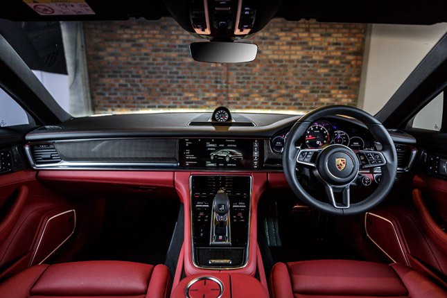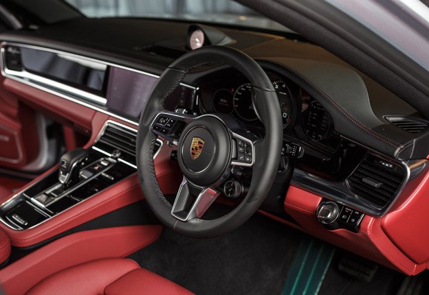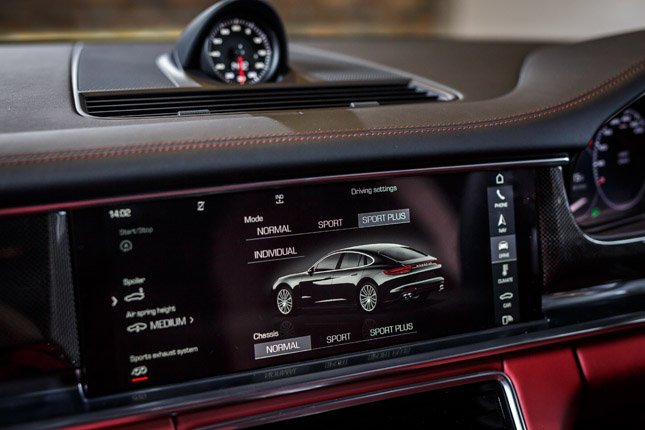 Handling highlights of the Panamera are rear axle steering, active roll compensation and three-chamber air suspension, Porsche Active Suspension Management electronic damper control, the enhanced Porsche Dynamic Chassis Control Sport system with Porsche Torque Vectoring Plus and a new electromechanical steering system. Brake performance has also been improved.