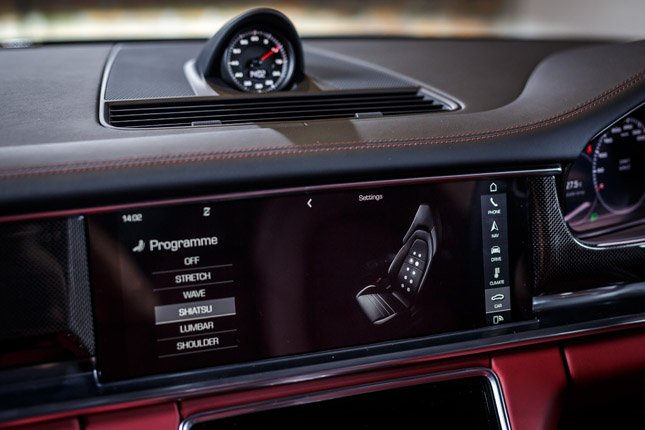 The interior has been digitalised with high-resolution displays although the tachometer at the centre of the instrument cluster remains analogue. In place of switches and buttons are touch-sensitive surfaces – even the louvres of the central air vent which are electrically adjusted using virtual sliders.  The Porsche Advance Cockpit is two seven-inch displays directly in the driver’s line of sight. By the gear shifter, the console between the driver and front passenger is the 12.3-inch touchscreen Porsche Communication Management system.