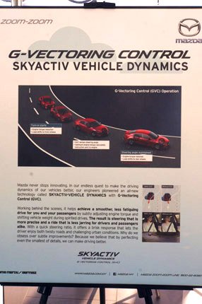 This Mazda innovation controls engine torque to improve handling and ride quality for the driver and passengers, especially when cornering. Based on the Japanese concept of Jinba-Ittai, the connected between car and driver, engine torque is reduced slightly, based on the steering and acceleration of the driver, to reduce the effects of weight transfer and lateral forces as the car corners. The effect is less body roll and improved handling.