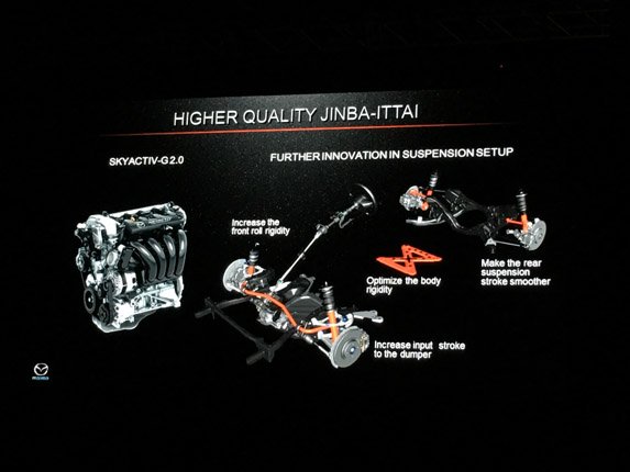 This Mazda innovation controls engine torque to improve handling and ride quality for the driver and passengers, especially when cornering. Based on the Japanese concept of Jinba-Ittai, the connected between car and driver, engine torque is reduced slightly, based on the steering and acceleration of the driver, to reduce the effects of weight transfer and lateral forces as the car corners. The effect is less body roll and improved handling.