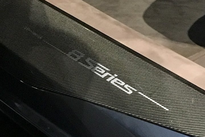 The 8 Concept is a two-seater with two small but usable rear seats for sub-five footers. Space in the cabin is optimised by the use thin hard-shelled carbon fibre-backed front seats upholstered in pattern-stitched leather which add to the overall space age-y look. The unmistakable reek of high-tech sports engineering and opulent luxury comes from cladding the interior surfaces in a combination of carbon-fibre, hand-polished aluminium and Fjord White leather.