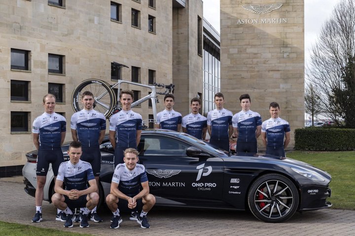 Aston Martin has revealed the team colours of the One Pro Cycling team. Aston Martin is the official partner of the team in 2018 and the British team’s kit has been created by Aston Martin’s design department with the Italian cycling clothing brand Nalini. The squad will also cycle on Aston Martin-branded Storck bicycles for the first time.