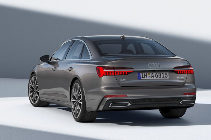 The all-new A6 retains its characteristic slab-sided appearance although it has noticeably more rounded lines than its predecessor. The most striking exterior differences are in the new head and taillights, and the addition of a new chrome strip on the rear that runs through the lamps. HD Matrix LED lights are available.