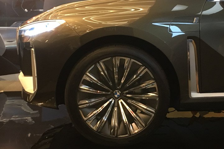On the roof is a huge glass structure sectioned out in three parts to form a Y which adds to the sense of spaciousness in the car. The chrome strip that runs from the air breathers to the flank is a design element from the current 7 Series saloon.