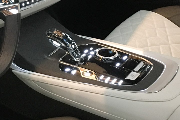 The 12.3-inch instrument cluster screen and central touchscreen information display are a continuous, interactive display. Below them, in the centre stack and centre console, the functions are grouped on clean and tautly chiselled surfaces. Control interfaces like the selector lever, iDrive Controller and multifunction buttons on the steering wheel are partially backlit dark Silver Night crystal glass which adds sophistication to the luxury of the X7.