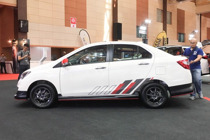 Proton has the refreshed Iriz and Persona on display. The updates are largely on the exterior but the Iriz also gets some eye-catching new upholstery with a red and blue stripes on the back rest. The two models and the X70 sport Proton’s new cohesive, consistent branding style, the Proton brand letters centred and spaced across the back at driver’s eye level.