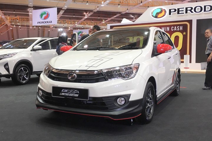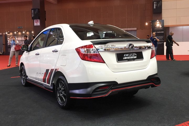 Perodua recently announced the launch of the Bezza Limited Edition and there’s one on display at the motorshow to see and feel. Only 50 units are available for booking at the Malaysia Autoshow, priced at RM44,900 on-the-road without insurance.Based on the Bezza 1.3 Premium, the Limited Edition has ivory paintwork with a full GearUp body kit finished in matte black with an all-round red lower pinstripe, a matte black rear spoiler, a blacked-out roof and dark grey alloys. In addition, the sporty exterior has red door mirror covers and geometric graphics on the bonnet and lower sides.