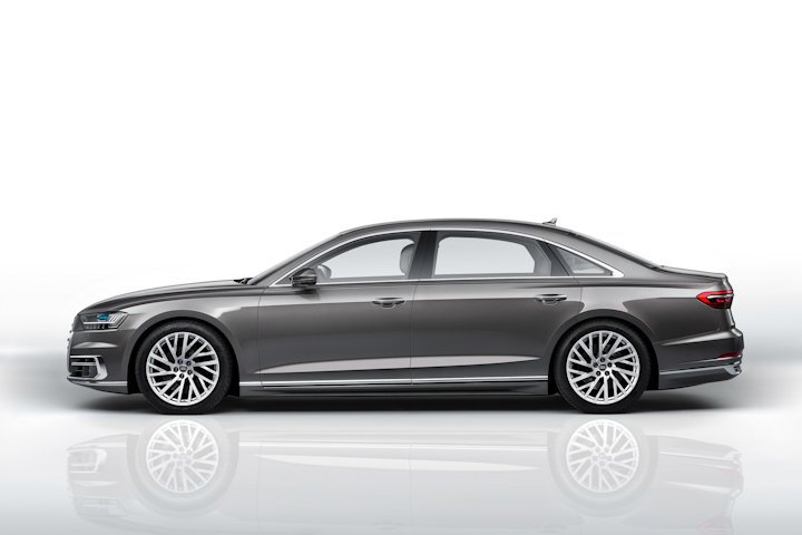 The Audi A8 comes standard with mild-hybrid technology. This enables the car to coast with the engine switched off, and offers a smooth restart at junctions or traffic lights. This also extends the start/stop function and an energy recovery output of up to 12 kW. Audi claims that the new drivetrain is able to achieve 0.7 litres per 100 kilometres in real driving conditions. The key element for this is the 48-volt electrical system, which in the A8 serves for the first time as the primary electrical system.