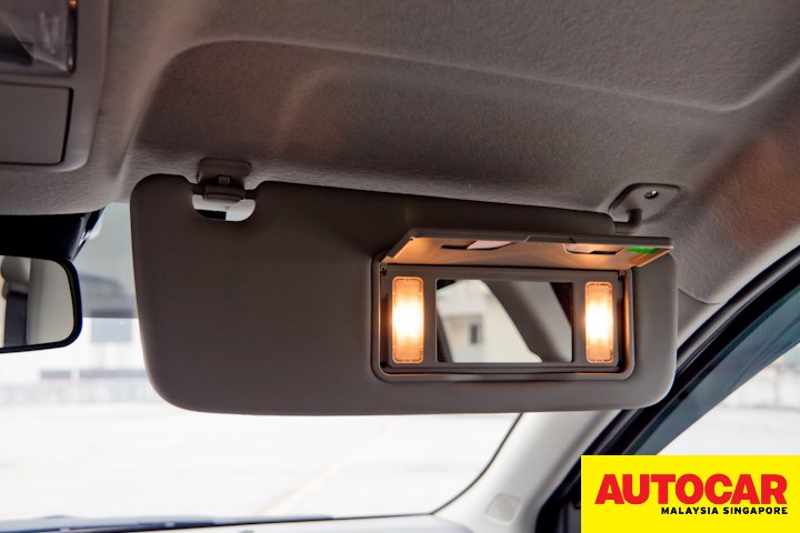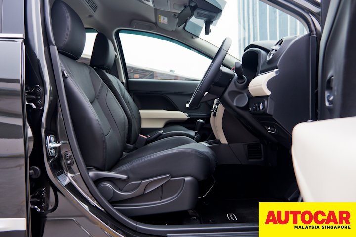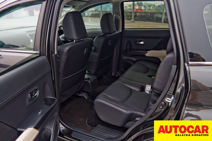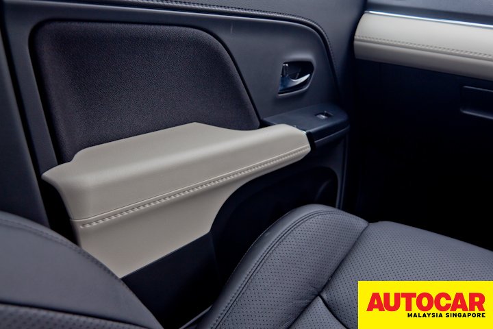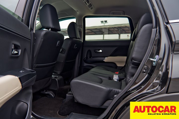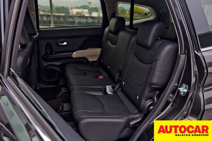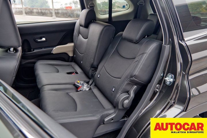 For a person who is 1.68 metres tall, the front seats are accommodating while offering lumbar support bearable on long road trips. Both front occupants are able to adjust the seats manually, while the driver is able to adjust their height. The second-row seats can sit three abreast and fold 60:40 which passengers can recline and slide aft and fore to give more room for the two sitting on the third-row seats. The second-row seats can tumble and fold forward by pulling the seat lever forwards to allow access to rearmost seats.