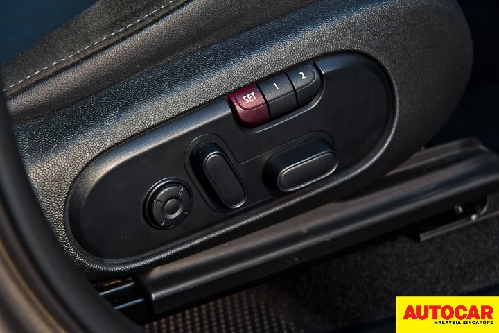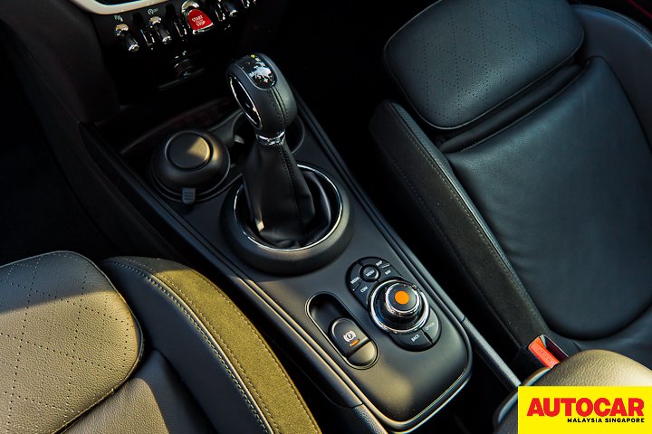 However, drivers who are familiar with the BMW brand would know what’s up; like the signature hot orange illumination of the instrument cluster, dials and buttons, the memory seat buttons with an opaque red ‘Set’ button, the self-correcting signal indicator stalk, and the Steptronic gear selector’s typeface and shifting pattern. Even the Mini Connected user interface is heavily adapted to the BMW iDrive’s information architecture to suit the Mini branding look and feel (more on that to come).