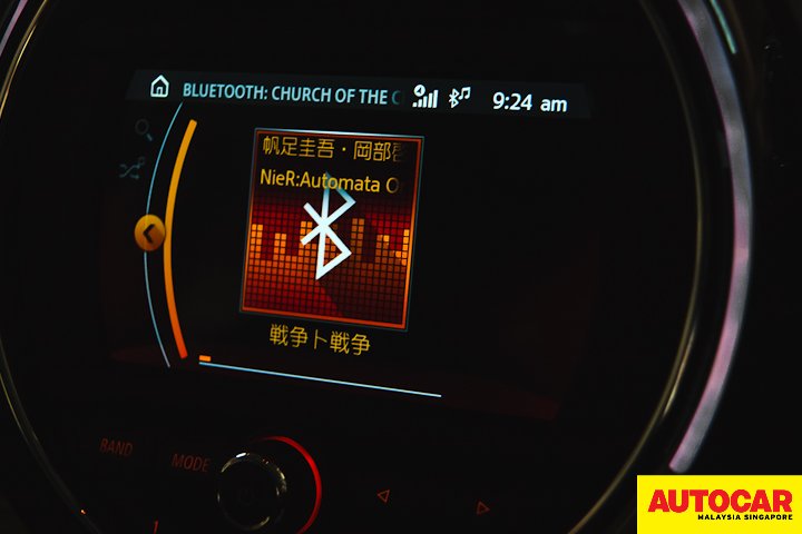 Mini Connected is able to stream music from Spotify via Apple CarPlay or Bluetooth, CD and USB. The latter reads AAC (*.m4a) @ 320kbps, AIFF @ 48kHz 16-bit, MP3 @ 320kbps, WAV lossless, WMA @ 192kbps, WMA lossless and FLAC lossless.