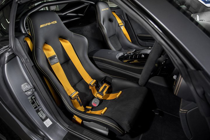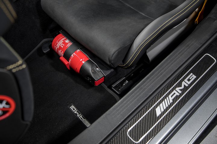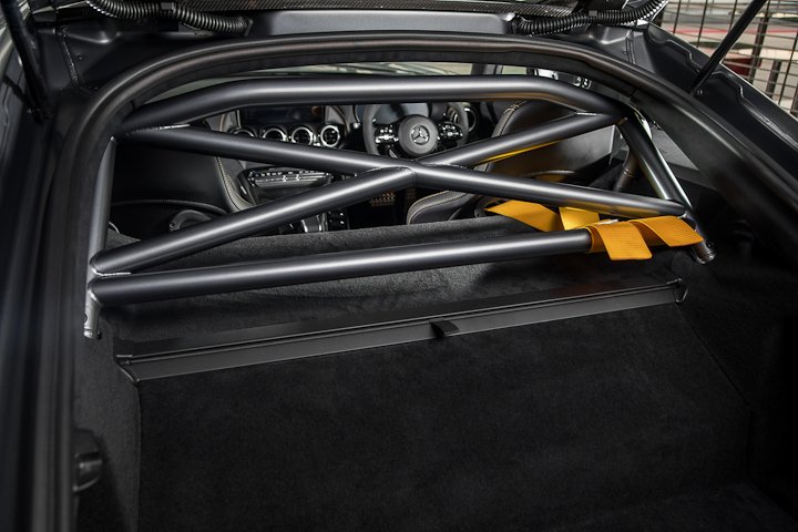 For the Malaysian market, the AMG GT R Pro gets the AMG Track Package as standard. the track pack comes with a roll-over protection system, four-point safety harnesses for the driver, and a 2-kg fire extinguisher. The roll-over protection system consists of a main roll bar, a brace for mounting the harnesses, two rear braces as well as a diagonal X-brace in the rear end. The roll-over protection also further increases chassis rigidity. Likewise, it also comes with the one-piece AMG bucket seats.