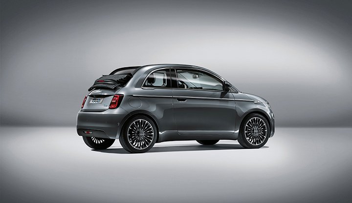 The all-electric Fiat 500 debuts with 320 km range from a 42 kWh battery and will be a convertible only.