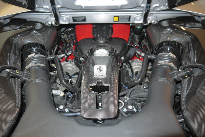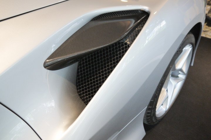 The additional power was achieved by moving the air intakes from the flanks to the rear where they are located on either side of the blown spoiler, ensuring greater air flow to the engine. The new intake line was derived directly from the 488 Challenge.