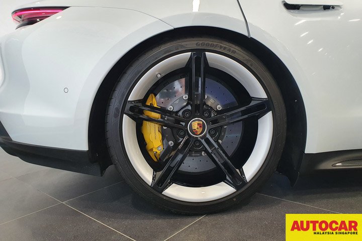 The flagship Turbo S is fitted with Porsche Ceramic Composite Brake (PCCB), and carbon door sill guards, sport design sideskirts and rear diffuser in louvered design. These are available options for the Taycan Turbo and Taycan 4S.