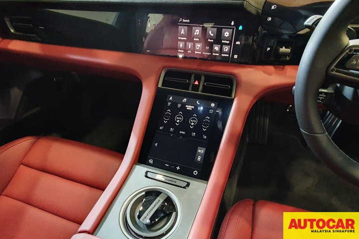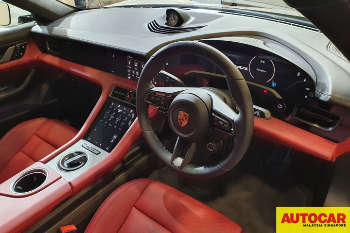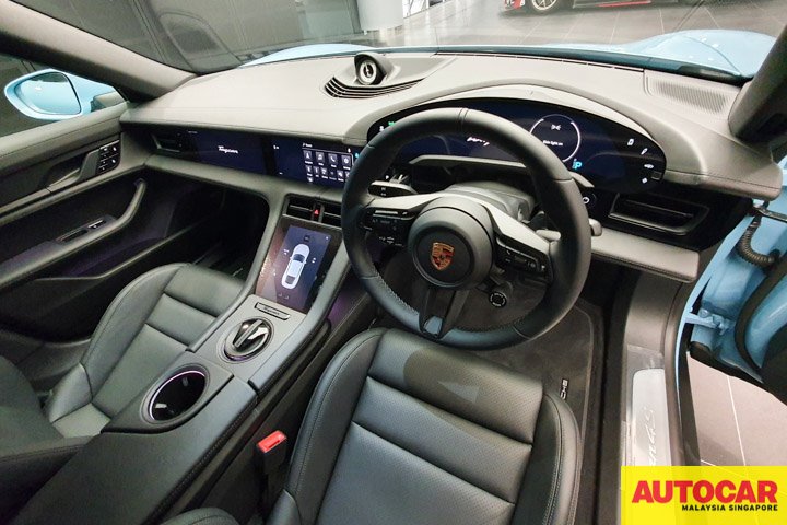 Inside, the dashboard is an integrated glass band consisting of a freestanding 16.9-inch curved instrument cluster, a 10.9-inch instrument display and a display for the passenger. The Taycan Turbo S and Turbo have a leather-free interior which is an option for the Taycan 4S.