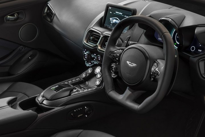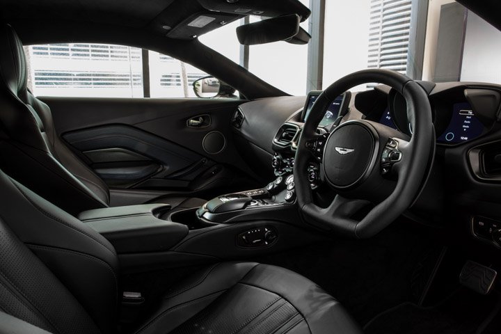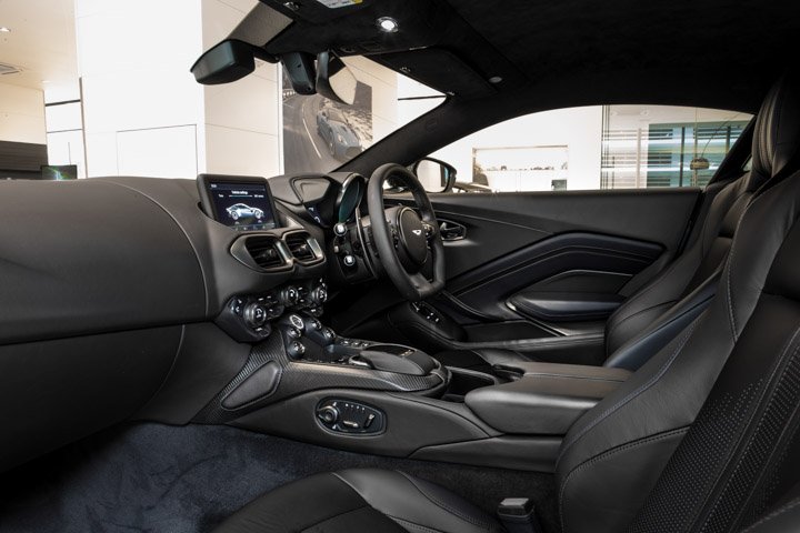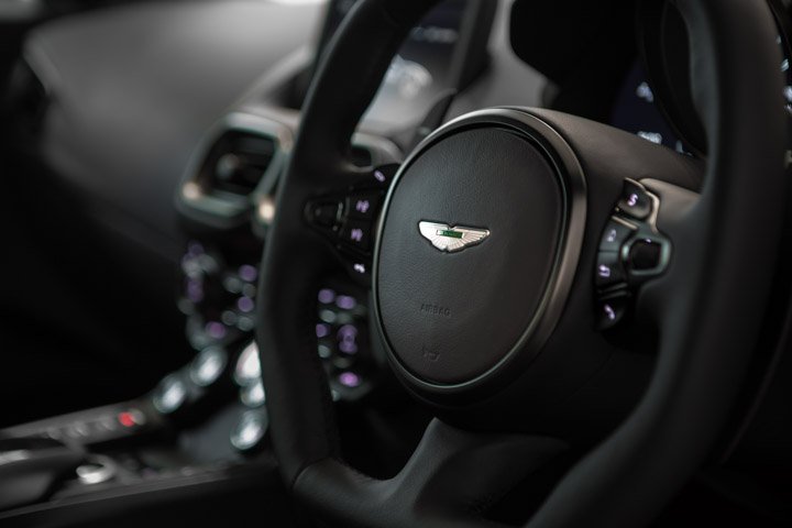 The Vantage Dark Night also has machined carbon fibre wings front and rear which are new options, recently introduced by Aston Martin Lagonda. The car also has carbon ceramic brakes, 20-inch lightweight forged wheels and machined carbon fibre ‘Aston Martin’ script on rear decklid.
