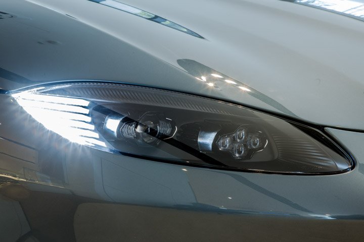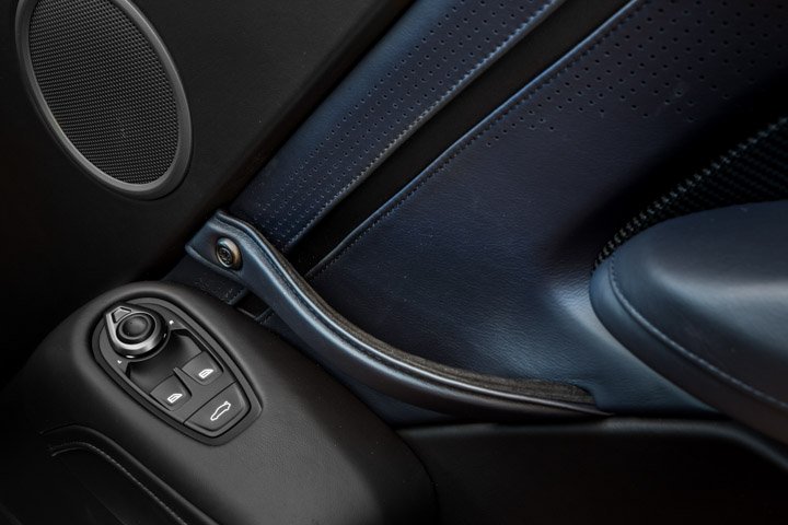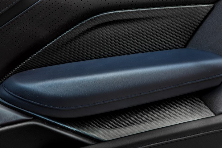 The cabin is clad in Caithness leather and Alcantara with Metalic Black and Dark Knight leather blurring into Satin Carbon Fibre trim inlay and Dark Chrome Interior Jewellery with pure black Alcantara.