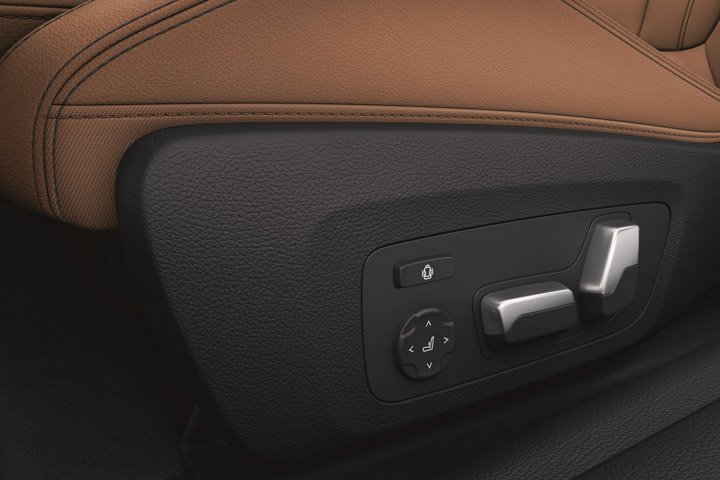 A high centre console separates the driver from the front passenger. The instrument cluster and Control Display are integrated. The instrument panel is complete in Sensatec. There are also Multi-function buttons for the steering wheel, additional storage compartment with the front armrest, and electric seat adjustment with memory function for the driver.