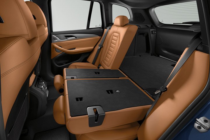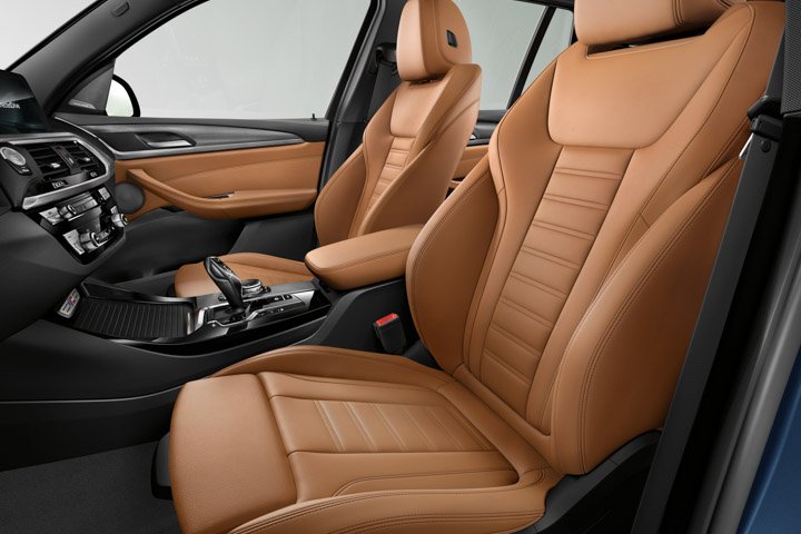 Colour for the BMW X3 sDrive20i include Alpine White, Glacier Silver, Black Sapphire, and Phytonic Blue. All exterior colours are paired with black Leather Vernasa upholstery with black stitching.