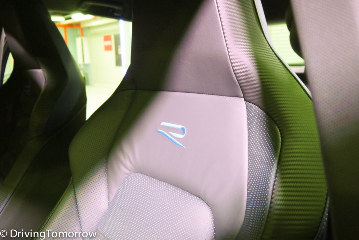 Inside, the R has a Harman Kardon 480-watt audio system with 10 speakers. The sports seats in front are Nappa leather with R logo stitched in. The driver’s seat is electrically adjusted and has lumbar support. The Digital cockpit and digital infotainment system each have 10-inch monitors. Wireless app-connect for CarPlay and Android Auto are included along with navigation.