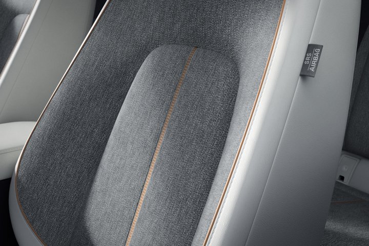 The interior has sustainable, renewable materials. There is cork on the floating centre console and the door grips. The door trim uses fibres that are made from recycled plastic bottles.