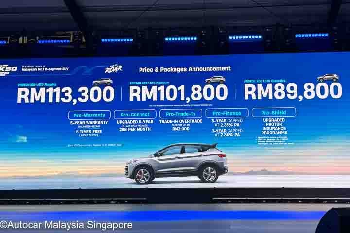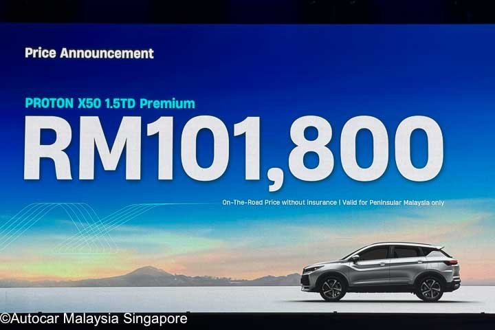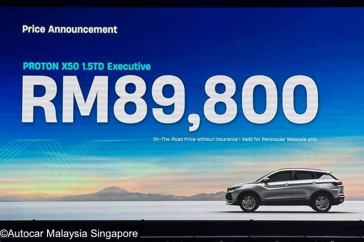The prices, on-the-road without insurance, for the all-new Proton X50: