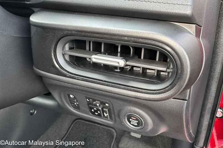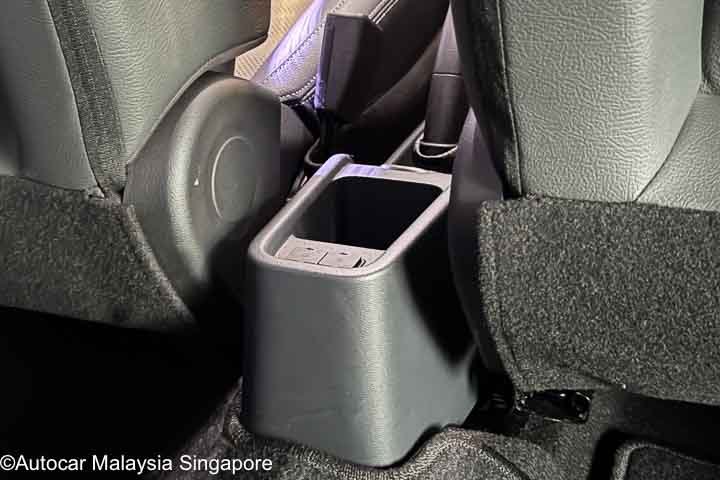 There are new capsule-shaped air vents, which have been likened to a congkak board. Unlike in the previous generation Saga, the vents are at the same level to each other along the dashboard. Two vents are at either end of the dashboard and two in the middle. Under the centre air vents are the climate control knobs. These are large and easy to locate when adjusting fan speed or temperature. Underneath which, at the centre console, in front of the gear stick, are two of the seven cupholders. There are two more at the front door pockets and two at each rear door. The seventh is between the two front seats, behind the manual hand brake. The cupholder can also double up as a phone charging point. There are two Type-A USB charging ports located next to it.
