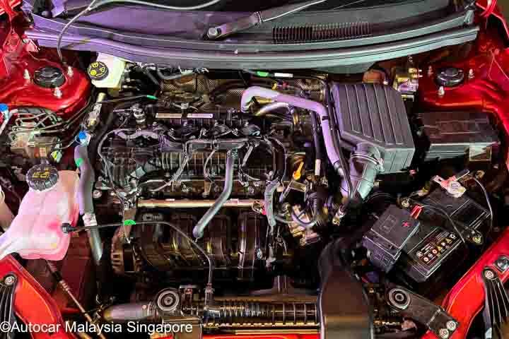 The lower fuel consumption is also due to the engine operating on an Atkinson Cycle as well as dual variable valve timing and an electric water pump which maintains engine temperature more effectively. The NVH (noise, vibration, harshness) is also 25.24% quieter with the fitment of a dual mass flywheel and toothed timing chain. The timing chain will also reduce maintenance costs compared to the timing belt in previous Saga models.