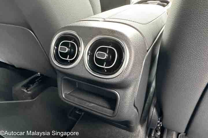 The AMG Line interior features black Artico manmade leather upholstery throughout with anthracite linestructure lime wood trim. The heated front seats are electrically adjustable and have memory function. The 11.9-inch infotainment display on the centre console has a metal frame with three squircular air vents above. There are squircle vents on either end of the dashboard as well as in the rear. Both the infotainment display and the 12.3-inch high resolution driver display are angled towards the driver. The multifunction steering wheel is shod in nappa leather and there are AMG sports pedals.