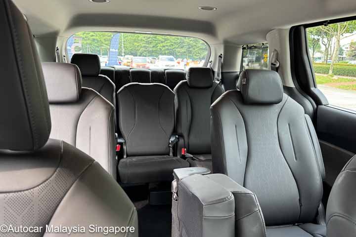 Meanwhile the 11 seater has a 2-3-3-3 configuration. In the second and third rows, the middle seats are folding jump seats to make access easier to the fourth row. The fourth row folds flat for cargo space.