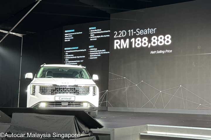 The new Kia Carnival is now available in Malaysia. The MPV was previously offered in six, seven and 11-seater configurations. For the facelifted Kia Carnival, Kia Sales Malaysia has consolidated the range into two variants, seven and 11-seaters. The gearbox and gearbox remain the same as before, a 2.2-litre turbocharged diesel engine that produces 202PS and 440Nm of torque, paired with eight-speed automatic transmission. The Kia Carnival is front-wheel drive.