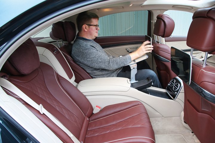 Configured thus, the S-Class’s back seat slides all the way to 37deg of recline. It’s supremely comfortable – at least half more luxurious feeling again, in this tester’s estimation, than either the Audi’s back seat or the BMW’s. And it’s definitely somewhere you wouldn’t need asking twice to snatch an hour’s sleep. The Mercedes’ pillowy rear headrest in particular is an invitation to unconsciousness almost as effective as an open fire, a full stomach and a repeat of Inspector Morse. Its footrest is at just the right height and angle to support your legs as you stretch out. And should you want to read or work while you’re so opulently cradled, the cleverly designed tables that fold out from the S-Class’s centre armrest, tables which can be inclined towards you to compensate for your unusually recumbent posture, make that very easy indeed.
