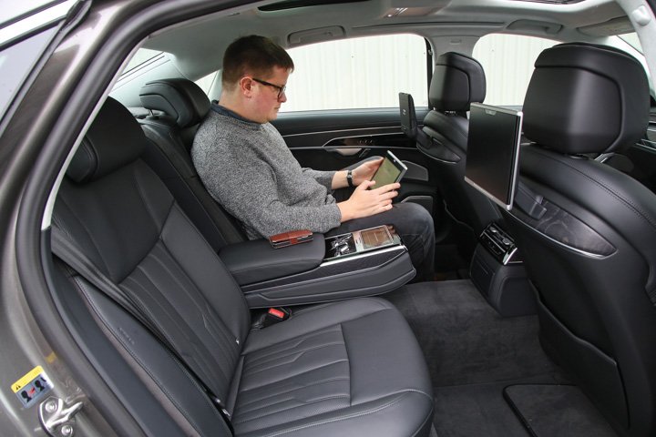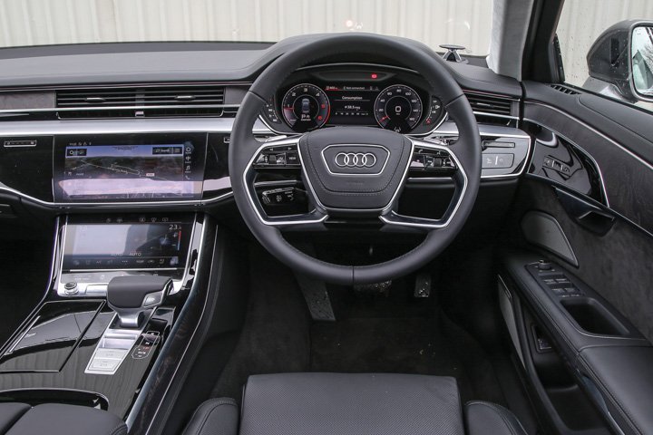 The Audi A8’s cabin has a restrained, formal-feeling ambience. It’s incredibly smart