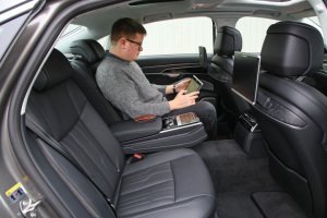 First, and in the interests of transparency, there’s an awkward equipment mismatch to acknowledge. Whereas Mercedes and BMW saw fit to send test cars equipped to what you might call a luxury-optimised specification – with every option ticked likely to make their rear seats more comfortable and agreeable as places in which to nestle your backside – Audi didn’t. So the S350d and 740d had ‘individual’ electric rear chairs adjustable for the largest recline angle possible, augmented with motorised foot rests and plumped with extra cushioning in places, but the A8 50 TDI made do without. However, with that in mind, our first surprise presents when we discover that the A8’s back seats are not the least comfortable of our trio.