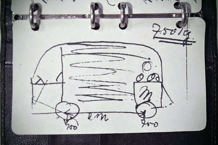 On a visit to Wolfsburg, VW dealer Ben Pon was inspired by a parts mover based on a Type 1 platform. His sketch helped VW engineers create the Type 2 Transporter