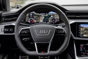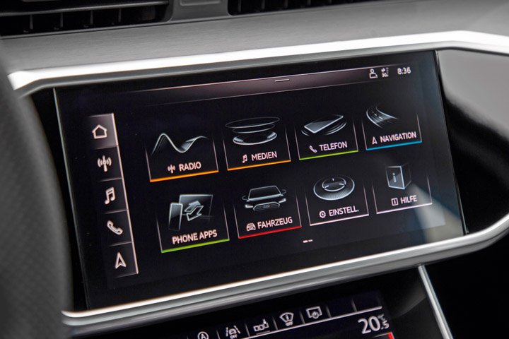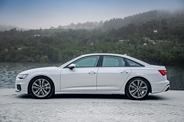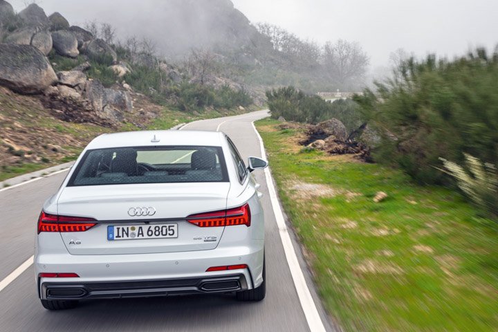 Until Audi Sport serves up the inevitable S6 and RS6 firecrackers, the engine line-up is headed by the 3.0 V6 TFSI driven here. As is de rigueur, it houses its turbochargers within the 90deg vee, and the exhaust manifold melds into the cylinder head for a quicker warm-up sequence. It’s mated to a seven-speed dual-clutch automatic gearbox that’s also found in the predicted bestseller: a four-cylinder 2.0-litre 40 TDI diesel model with 204bhp. At launch, there’ll also be a 3.0 V6 TDI diesel with 280bhp and a new entry-level diesel V6 in the form of the 45 TDI. Both models use a regular eight-speed automatic gearbox.