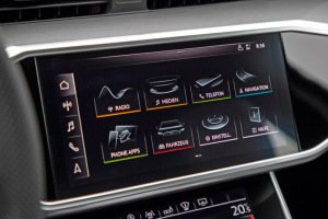 Within, you’re met with Audi’s novel MMI digital architecture, which uses two touchscreens (8.6in below for climate control and writing input, 10.1in on top for everything else). This is where Audi aims to stand out from the crowd, and it looks mighty slick, even if all that glass attracts dust that readily catches any sunlight.