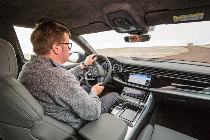 But I don’t think I’d drive it like that – at least, not much. Because the Q8’s mission is surely to bring a dose of handling poise and driver involvement to the big Audi SUV party beyond the abilities of its sturdier sibling. And, without ever really making your eyes widen with surprise, it does that well. Well enough, certainly, for those who want the occasional brush with excitement, but more often will just want the Q8 to act the consummate luxury conveyance.
