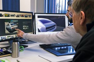 The job took three visits to Coventry over about six weeks: the first to outline the basics of the project (a compact, electrically powered two-plus-two coupé) and to meet Envisage’s designers and engineers; the second to review progress and discuss the design options early work would inevitably raise; and the third to view the finished design shown here.