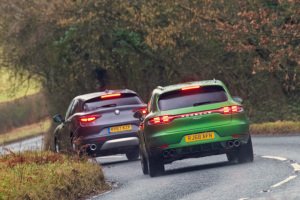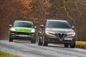 Second, despite having one less ratio, the Porsche gearbox is snappier than the Alfa’s and good at keeping the Macan’s motor percolating at the energetic speeds it needs to do its best work.