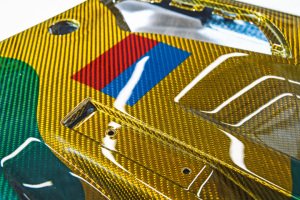 King hasn’t finished yet and is developing a new process to apply gold leaf below the lacquer, but after 15 years, several hundred thousand pounds spent and approval for his processes by the National Composite Centre, he has achieved his main goal. With his crack team behind him, he’s now the go-to guy for stunning carbonfibre finishes. A