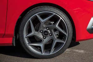 The Fiesta ST has a dedicated front hub design of the sort becoming common among cars of its ilk. It has allowed Ford to lower the car’s ride height without lowering its front suspension roll centre too much, and it keeps control of front kingpin angle and wheel offset as necessary in order to avoid too much torque steer and bump steer. The spring rate is slightly higher than that of the outgoing car but, as the engineers behind the car’s chassis development will tell you, the new damping and bushing in combination contribute to a more mature, rounded feel to the new car’s ride – and all without taking the all-important playful handling balance and cutting-edge response away from the handling.
