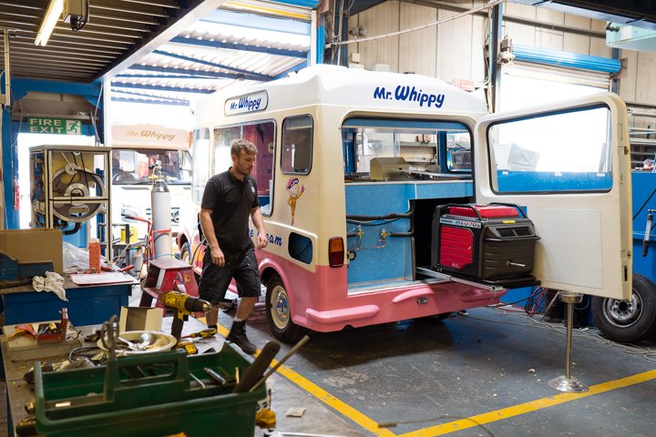 Future plans include a pure-electric ice cream van (expect it late next year). The company already does an electric conversion that allows the operator to power the soft ice cream maker from a remote electric power point rather than the diesel engine.