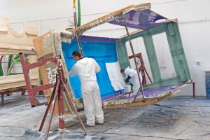 My tour starts in the glassfibre-reinforced plastic (GRP) shop, where each van’s body, freezer, water tank and sundry door moulds are produced. In the metal workshop the Sprinter chassis are prepared, and fridges, tanks and support structures fabricated.