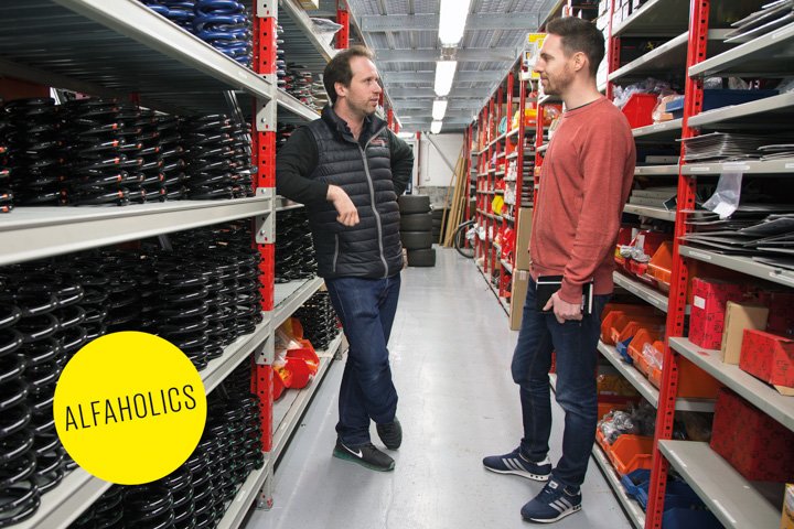 I drive on towards Clevedon, which perches on the edge of the Bristol Channel. On the outskirts of town, we find Alfaholics. Right here, 900 miles from Turin, lives what is almost certainly the world’s pre-eminent classic Alfa Romeo parts, servicing, racing and restoration business. Alfaholics grew out of Richard Banks’ one-man restoration outfit, first established in the 1970s, and it is run today by his sons Max and Andrew.