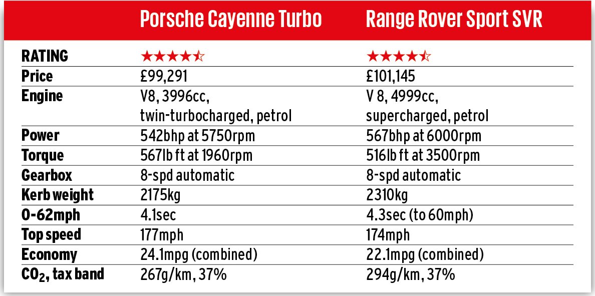 The SVR, from £101,145, costs a bit more than the £99,291 Porsche, but by the time you’ve got them mechanically closer to identical things have shifted the other way. Swings and roundabouts, really: even at this rarefied level of vehicle purchase, things are perilously close between competitors.