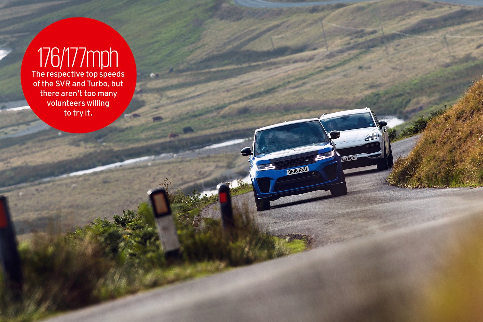 The only difference, then, is how flamboyantly you want to do it. If you pick the Porsche, know that you have the more refined, easily as capable, more rounded and perhaps the ‘better’ product. But envy the Range Rover Sport SVR driver every time they give a burst of throttle, lift off again and then arrive at a corner. A