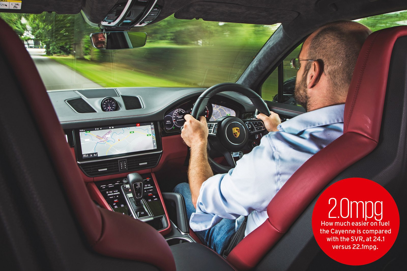 The Range Rover Sport is too, although it manages to do much the same with even more dynamism. True, at 4879mm along its length the SVR is slightly shorter as the Cayenne while being the same width across the body, but the additional claimed weight (which Land Rovers tend to exceed when we put them on our own scales) should mean that the Range Rover is less nimble.