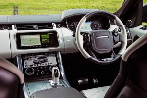 That’s not down to its interior. No, the Range Rover Sport has a fine cabin, although in SVR guise you have extravagant plastic-backed front seats, with a leather pattern that looks like the Umbro sportswear badge, foisted upon you. But they’re comfortable, the driving position is more elevated than that of the Porsches and the infotainment system is the one that made its debut on the Range Rover Velar not so long ago. In some areas it’s better than the Porsche but mostly it’s not, and in both cases there are others who do it better. But the funky steering wheel-mounted switches, whose purpose can be modified depending what’s on screen, are very astute. Expect to see lots more of this sort of thing.